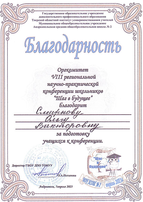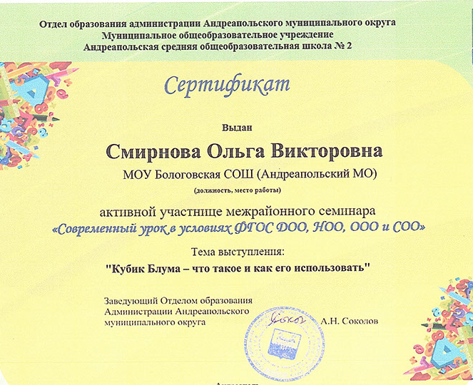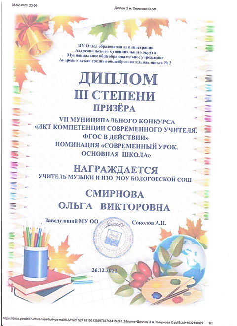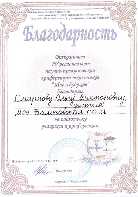 ПЕРСОНАЛЬНАЯ СТРАНИЦА СМИРНОВОЙ ОЛЬГИ ВИКТОРОВНЫ