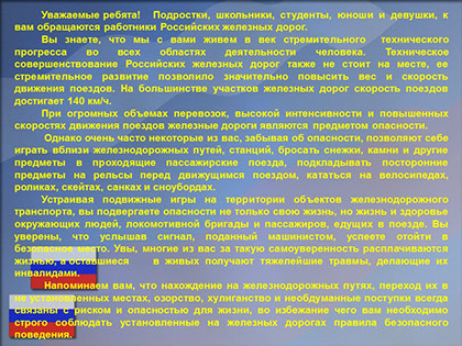 Правила безопасного поведения детей на железнодорожном транспорте.